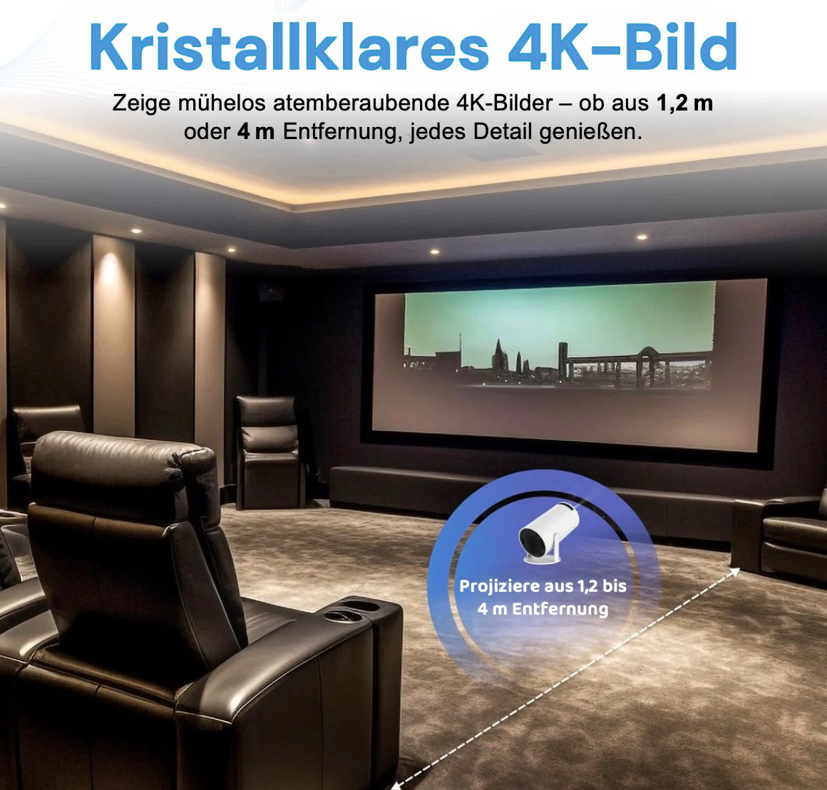LUGOFLIX Pro 4K Beamer – Tragbarer Projektor in Kinoqualität