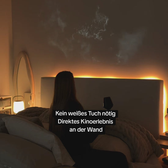 Ich finde den Lugoflix Beamer echt cool. Man kann ihn in alle Richtungen drehen, von der Wand bis zur Decke. -